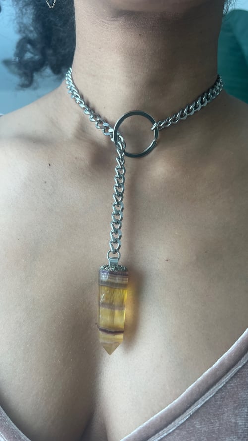 AMINA Silver • Amber Fluorite Lariat Necklace